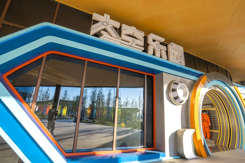 太空樂園位于江蘇省鹽城市射陽縣日月島康養旅游度假區內,醒目大膽的色彩搭配建筑,使得整個樂園色彩明亮、空間靈活生動,以獨特創造性的方式呈現科技、天文、藝術融合為一體的宇宙主題樂園,利用未來科技打造一個潮趣無限的元宇宙空間。