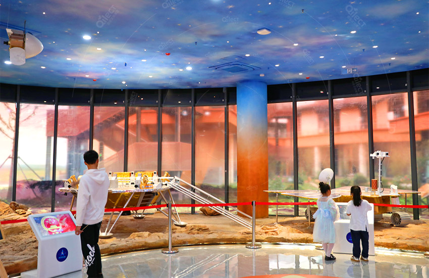 一層設計為展示區,高度還原的太空站艙段、神舟飛船、長征火箭以及火星場景等等,能夠讓孩子們更加直觀、近距離地了解航天科技和太空知識,為進一步的探索太空打好基礎。