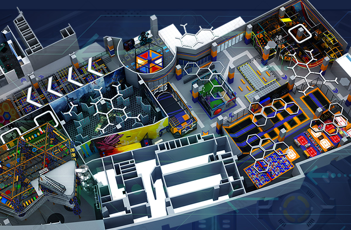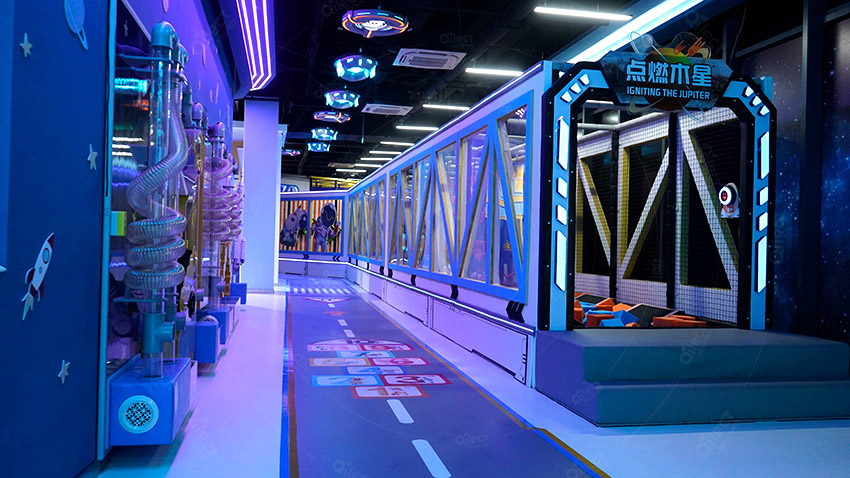 占地面積:1070㎡,分為10個功能區域:水吧,積木區,益智手工區,火星科考站,太空城堡,彈跳迷宮,魔鬼滑梯,蹦蹦云,墜落