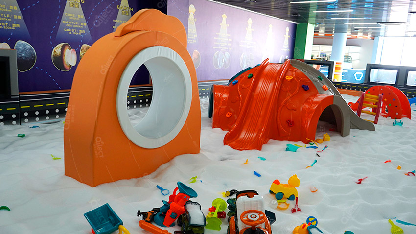 極具沉浸式風格的主題樂園,滑梯、挖土機、小鏟子...流動的雪地讓孩子自由玩樂,配置多種玩具,享受“基地”樂趣。