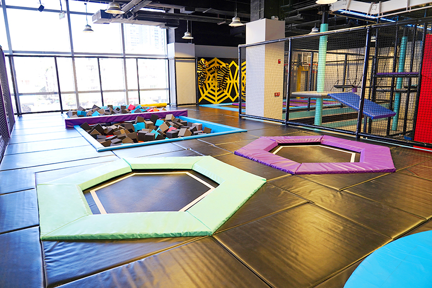 設計項目:自由蹦床、蹦床籃球,蹦床蜘蛛墻、創意攀巖、旱雪滑道、梅花樁、忍者闖關、螺旋滑梯、空中自行車、拓展步道、海綿池對壘、一站到底等。