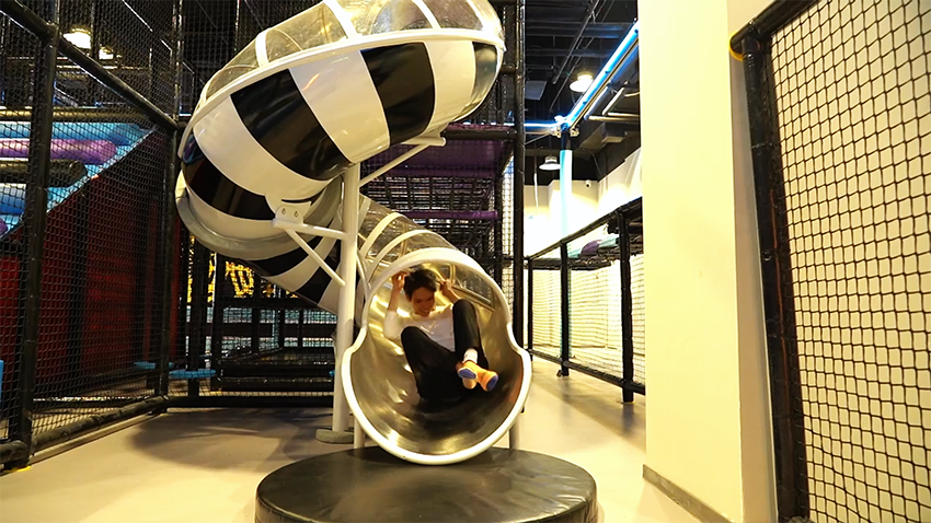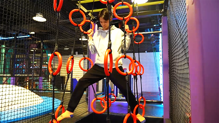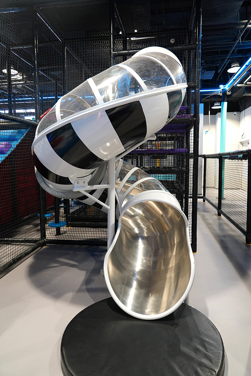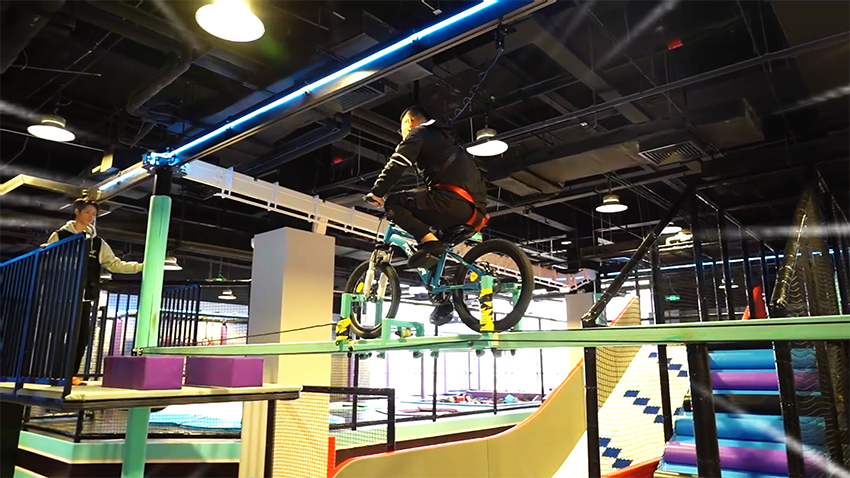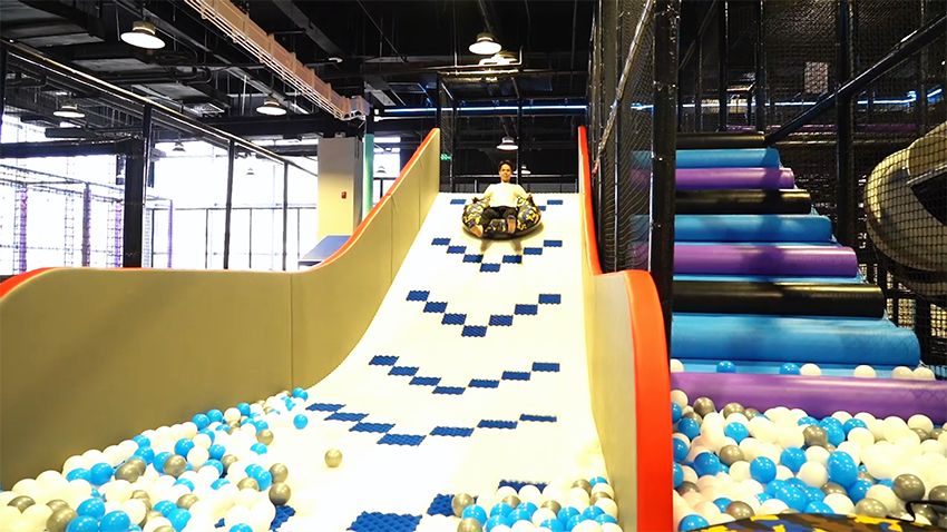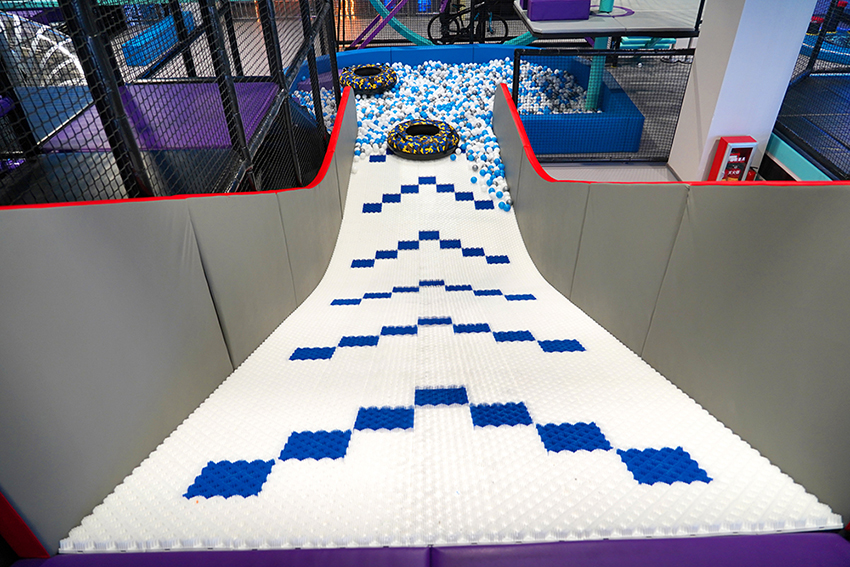 館是以“潮流運動”為主題的潮玩基地,館內設計了各種新穎、有趣的運動游樂項目,如創意攀巖、自由蹦床、螺旋滑梯、空中自行車、拓展步道、海綿池對壘、一站到底等游樂項目,是一個集娛樂、運動、競技、社交于一體的沉浸式體驗潮玩運動館。
