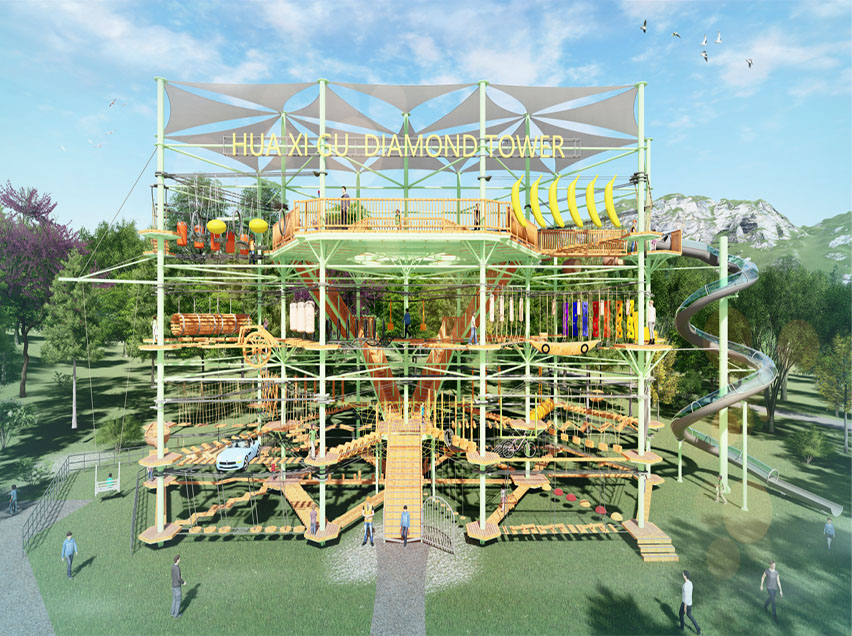 鉆石塔是一個立體探險娛樂綜合體,景區(qū)地標性運動游樂項目。包含尖叫滑梯、低空蹦極等,能滿足150個游客同時進行冒險體驗,適合熱愛挑戰(zhàn)極限的人群,也可以實現(xiàn)企業(yè)團隊建設(shè)、領(lǐng)導技能培訓、凝聚團隊,通過豐富的體驗帶給游客一個全天的刺激享受。被譽為運動游樂之王。