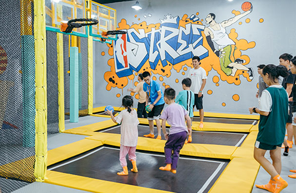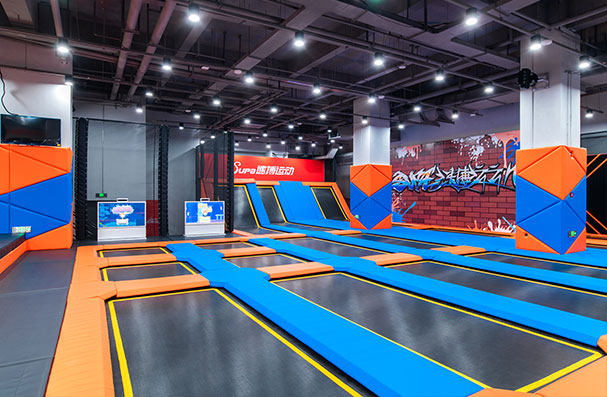 長沙速博運動公園是今年奇樂集團在湖南長沙做的蹦床主題樂園,是一個室內戶外結合在一起的樂園,室內部分主要還是以蹦床為主,加上各種VR游樂設備,鐳射對戰、射箭區、保齡球、籃球區、創意攀巖等,跟以往的蹦床公園項目差不多,與以往不同的是,在商場的戶外,對有一個高空拓展項目,我們奇樂研發的項目魔方矩陣,在魔方矩陣傍邊,是一個高12米的戶外攀巖,顧客來這里玩,既可以玩室內的項目,也可以玩戶外的高空拓展,具有挑戰性的項目。