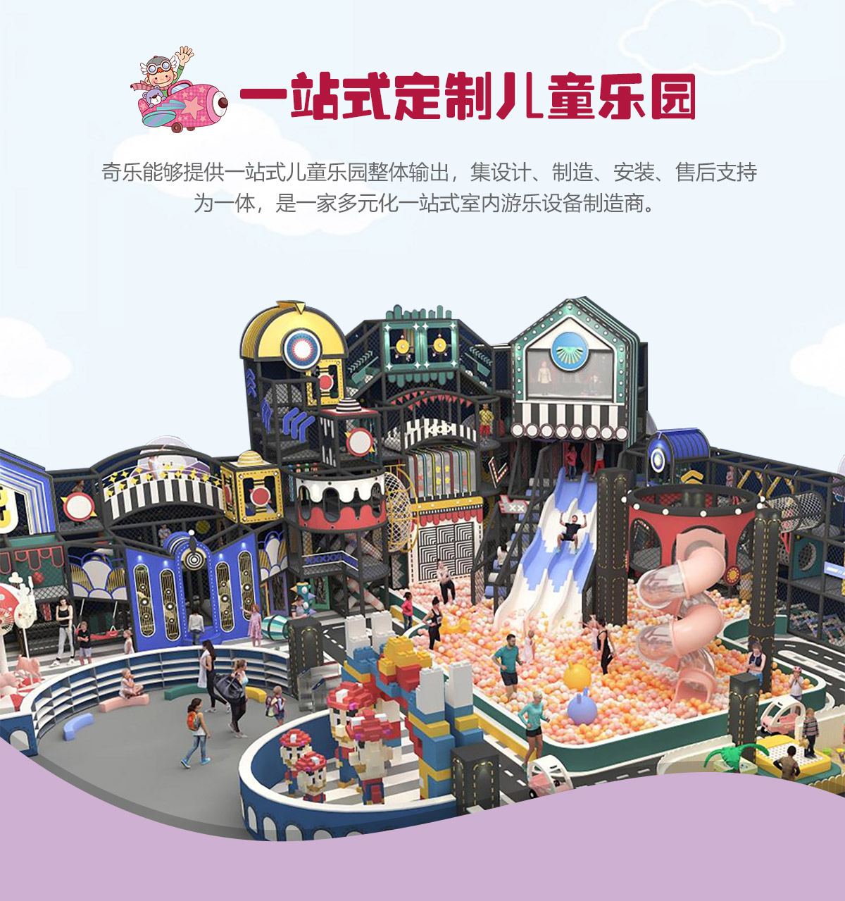 奇樂兒童樂園是包含淘氣堡、親子娛樂中心、彈跳迷宮、攀爬拓展、海洋球池等項目在內的一體化游樂設施。它有別于傳統的單一游樂設施,相比而言奇樂兒童樂園在項目上更加的豐富,在結構布局上更加的合理,在安全性穩定性上更有保障,在收益渠道上更加廣闊,是目前兒童樂園項目的主流。